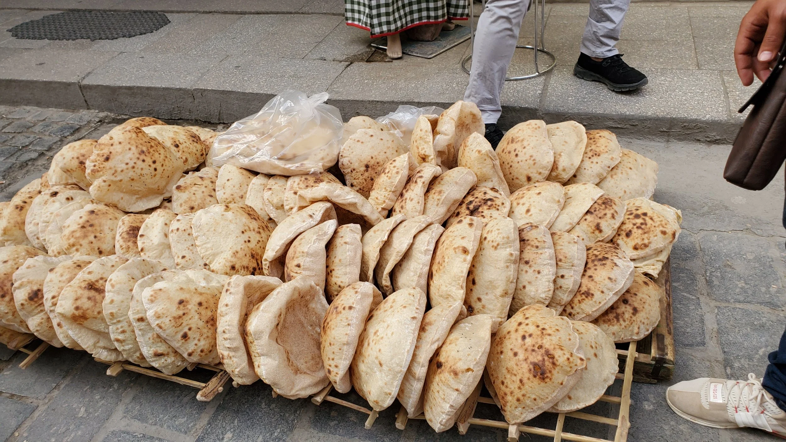 Perhaps my favorite thing about Cairo is “eish baladi,” the traditional flatbread that is delivered to every neighborhood so locals are ensured this staple at a subsidized price. I would see bikers with a tray of eish baladi balanced on their heads, dropping off these trays on street corners for everyone to grab. Tourists are able to partake, but at a higher price of course.